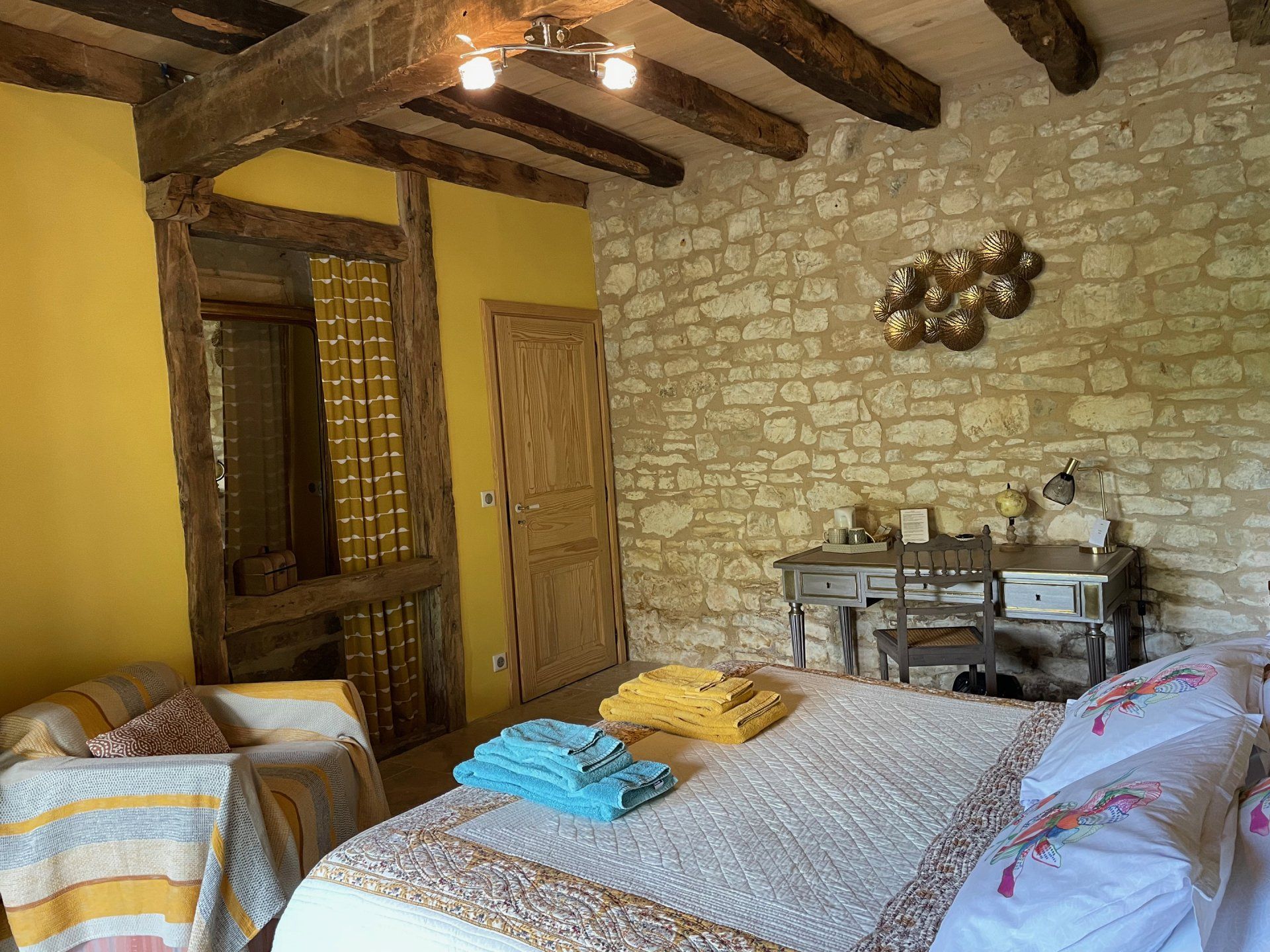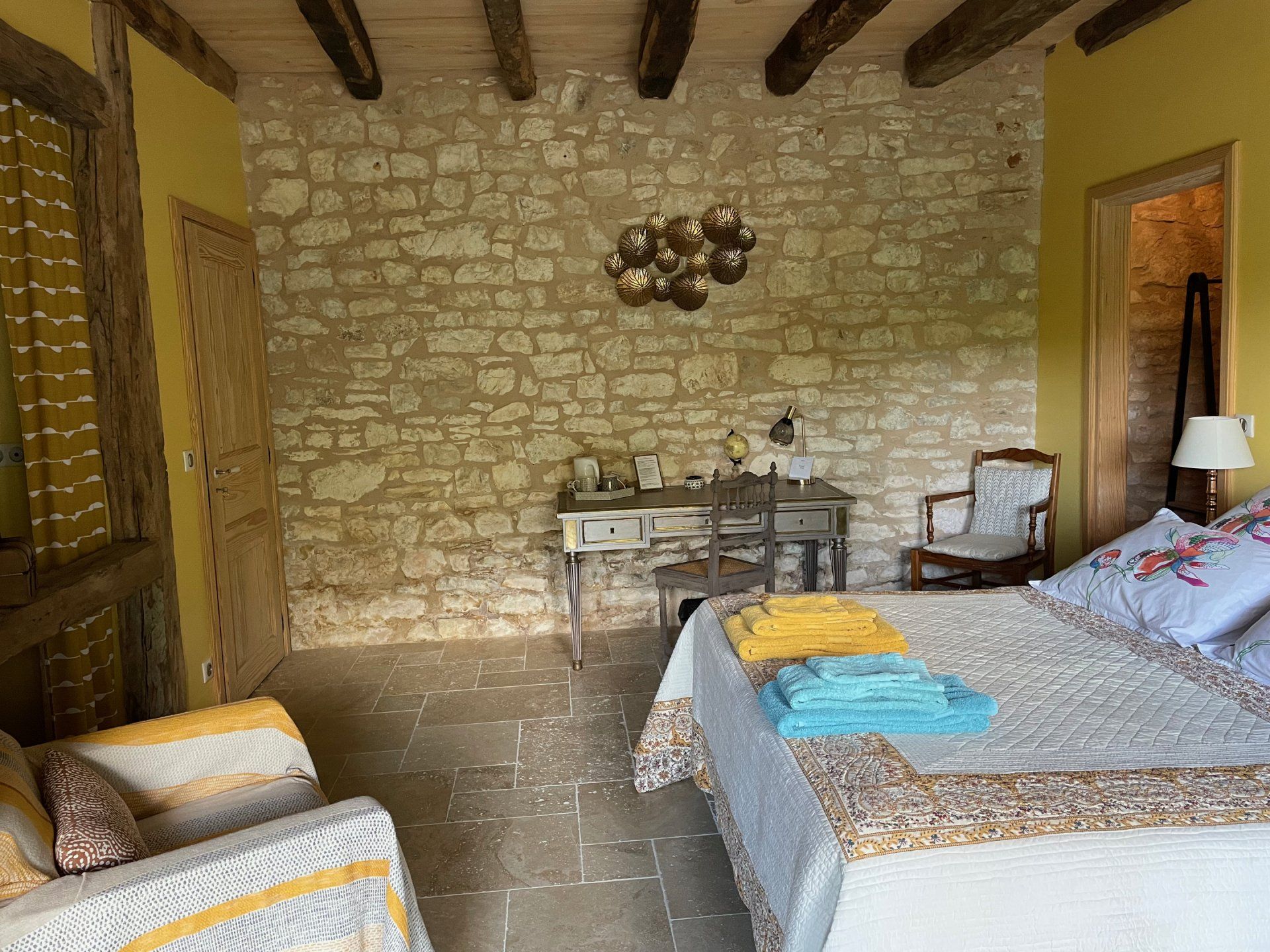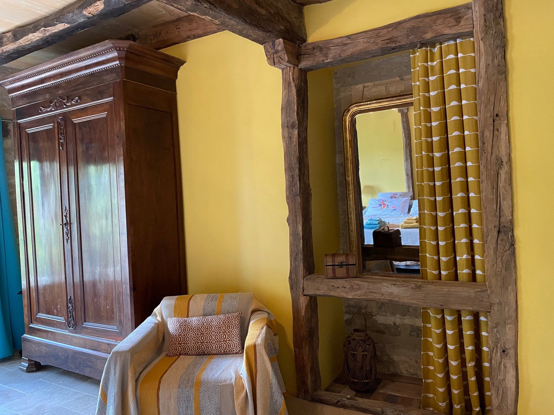 La chambre d'hôtes ANCOLIE, d'une superficie de 30 m2, se trouve au rez-de-chaussée inférieur de la maison d'hôtes. Vous pouvez accéder directement à la chambre par l'extérieur en empruntant la grande porte vitrée. Cela vous donne une totale indépendance dans vos déplacements.