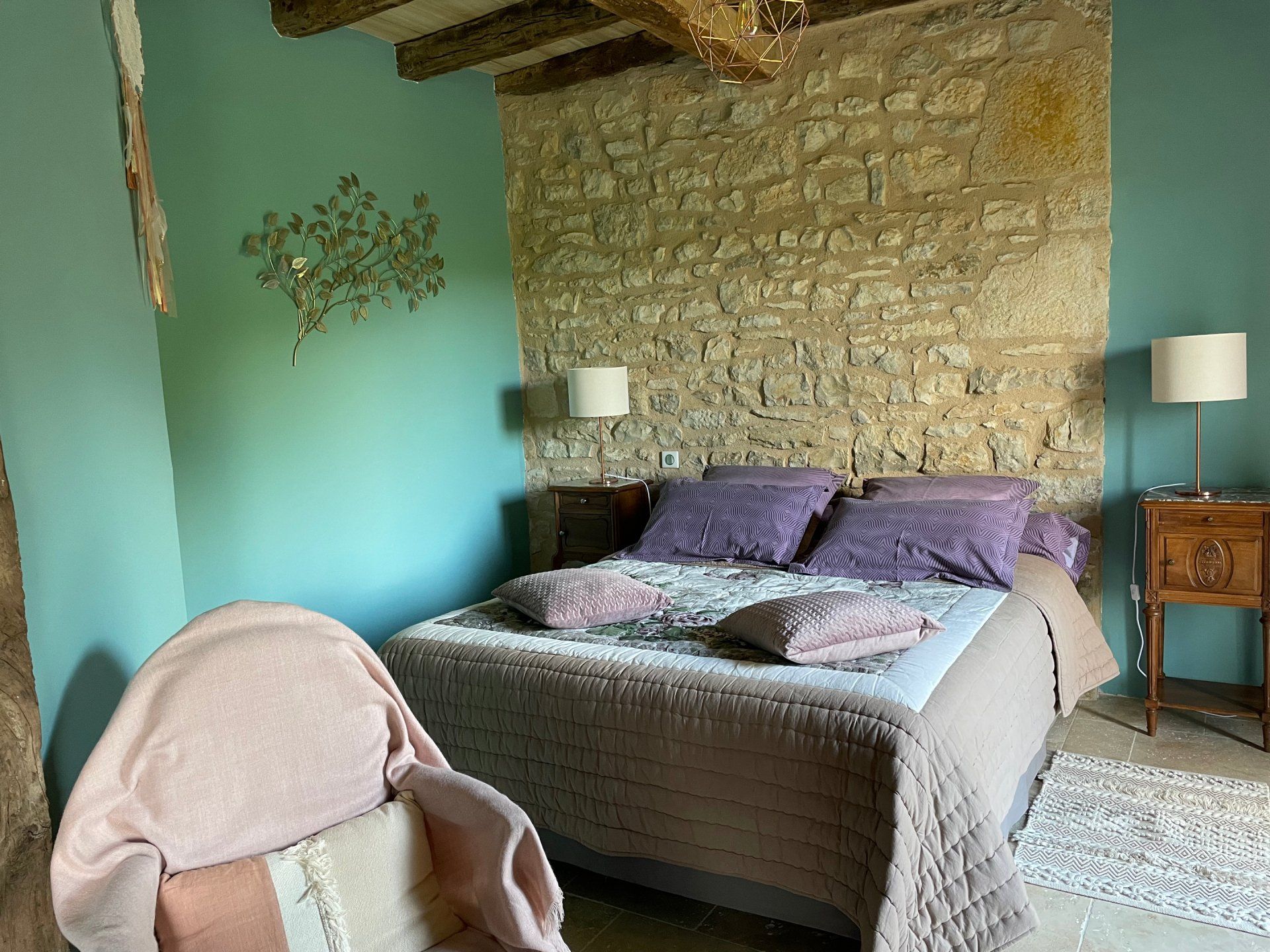 La chambre d'hôtes Capucine, d'une superficie de 25 m2, se trouve au rez-de-chaussée inférieur de la maison d'hôtes. Vous pouvez accéder directement à la chambre par l'extérieur en empruntant la grande porte vitrée. Cela vous donne une totale indépendance dans vos déplacements.